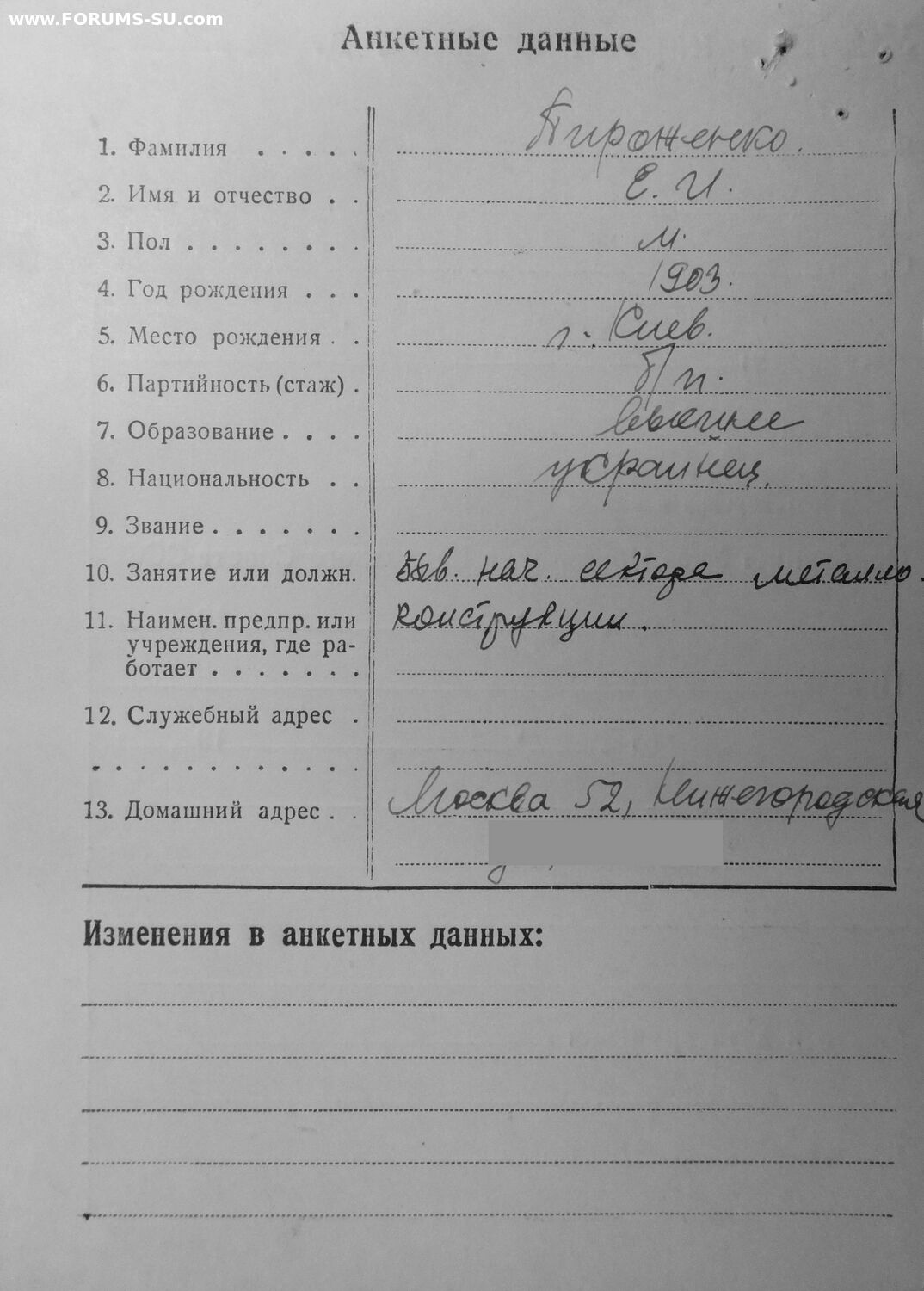 П и р о ж е н к о Евгений Иванович 1903 г.р., бывший начальник сектора металлоконструкций.