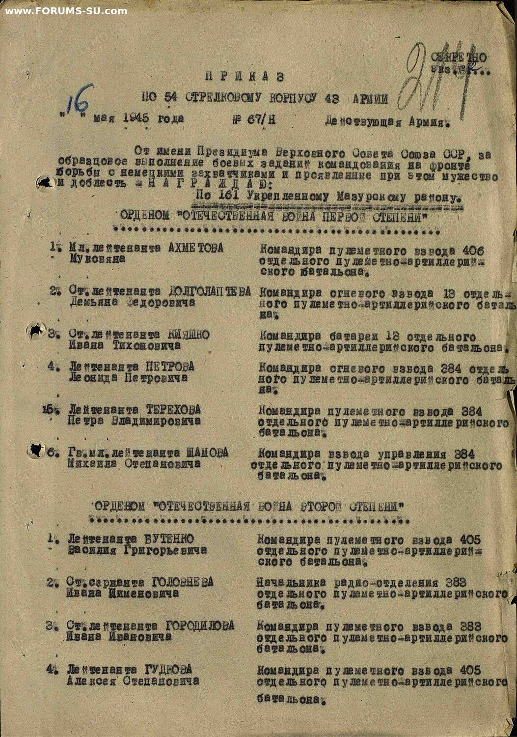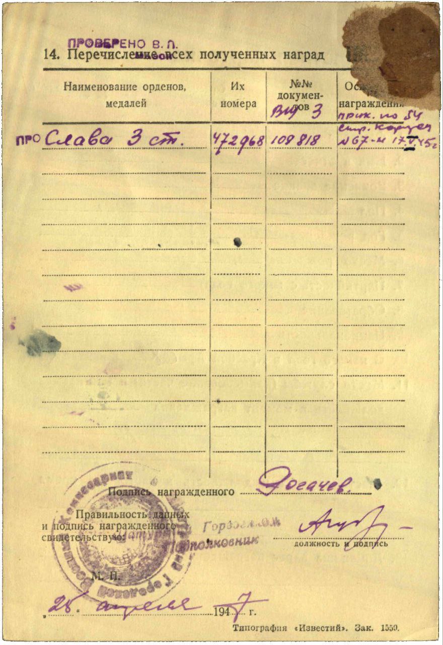 Красного Знамени, Суворова, Кутузова, Богдана Хмельницкого, Александра Невского, Ушакова, Нахимова, Отечественной Войны, Красной Звезды, Славы, За Службу Родине в ВС СССР