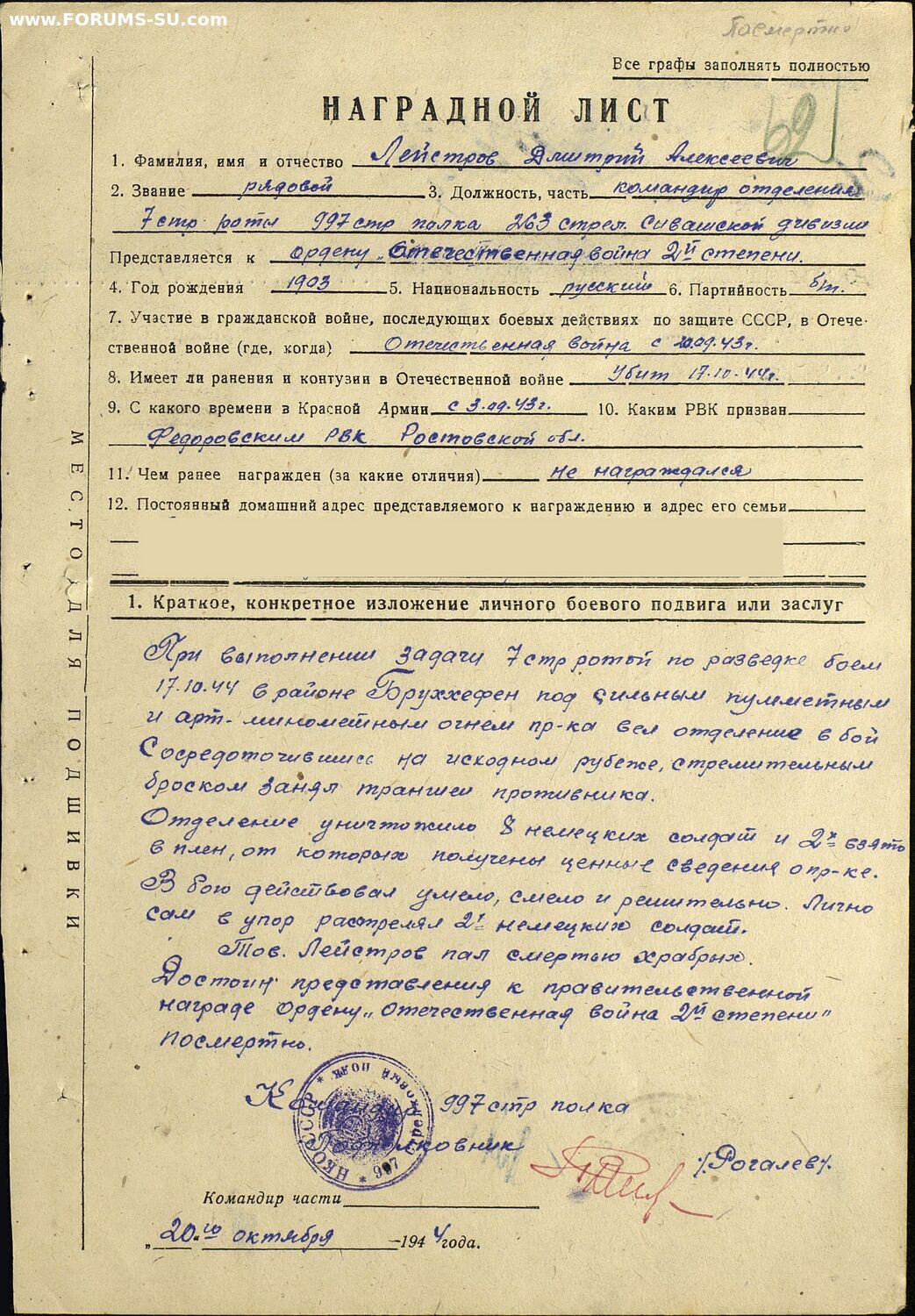В наградном упомянут Бруххефен. В настоящее время в составе посёлка Воскресенское Нестеровский район.