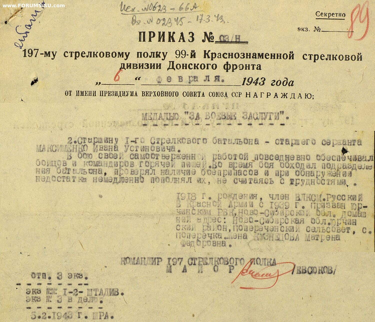 Учётная карточка - копия в цифровом виде. В ней есть отметка что в 1965 году награды возвращены.