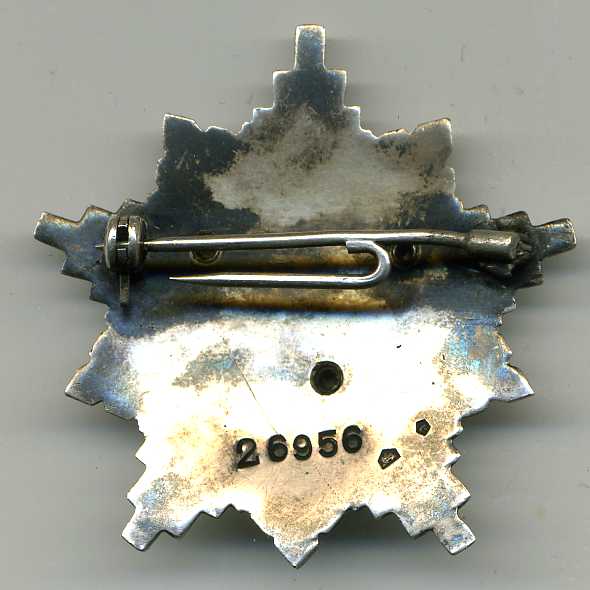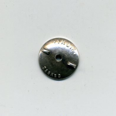На оборотной стороне три трубчатые заклёпки. На луче на 5 час нанесены два клейма.