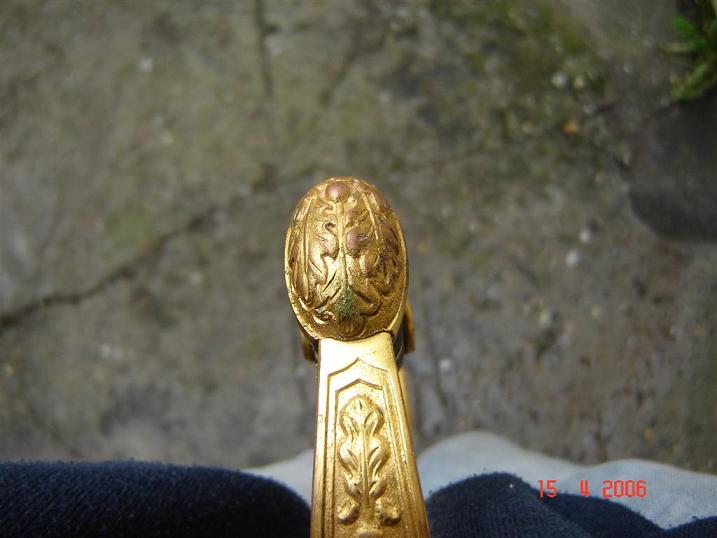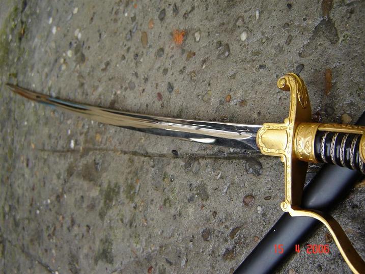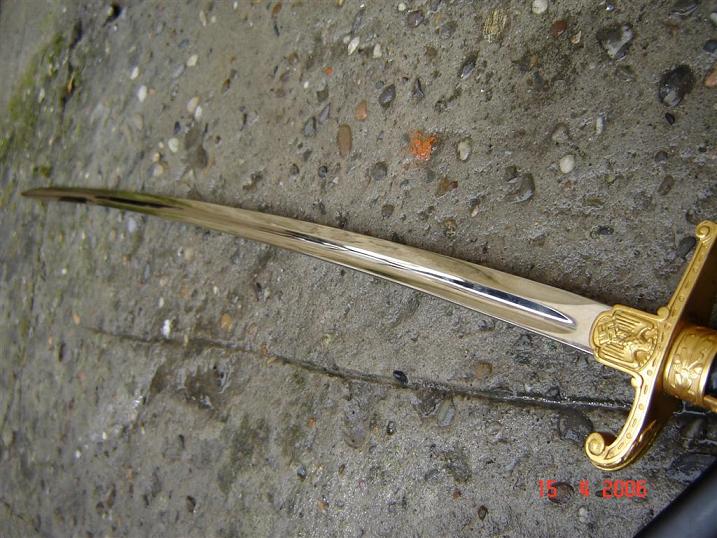 Фляст на месте, ни чего не разбиралось, лезвие зеркальное. Позолота родная. Есть подозрения, что ножны подкрашивались, но скорее всего это заблуждение.