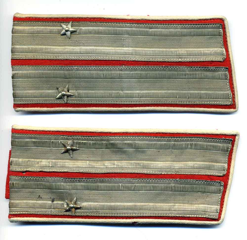 Он не родной. И те что вверху - тоже. На верхней паре предположительно родные только звёздочки, а галуны - немецкие. Это либо изделие для театра, либо для какого-нибудь эмигрантского музейчика.