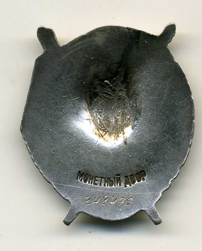 Какие-то идиоты похоже пытались из него сделать винтовой - спилили и заполировали ушко...( богата наша земля на идиотов...). Сзади остатки припоя на котором похоже крепился винт. Есть сколы на звезде и знамени. И всё же - хоть и раненый, но БОЕВОЙ орден.