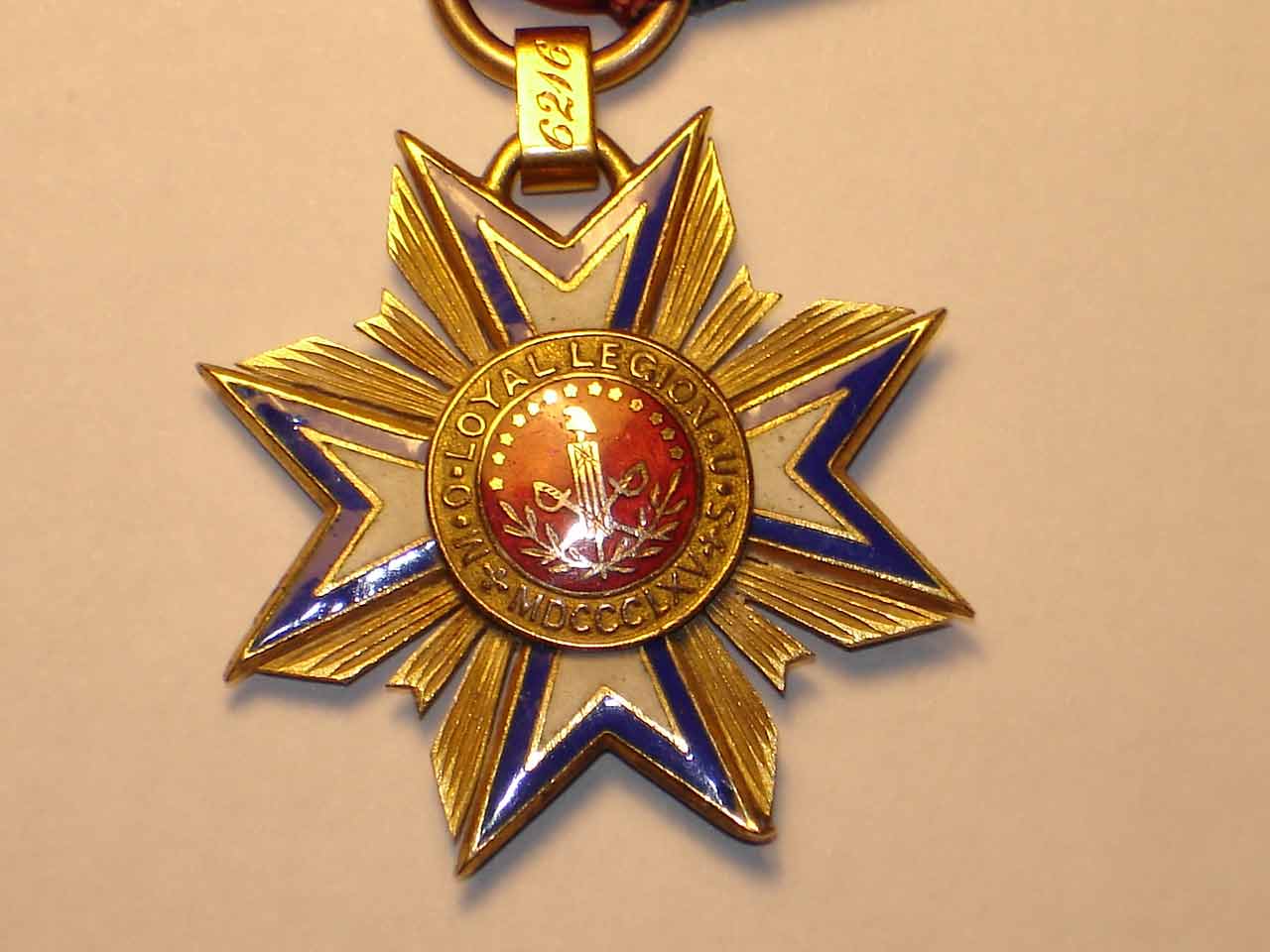 Золотая американская медаль "Military Order of the Loyal Legion of the United States". Номер 6216