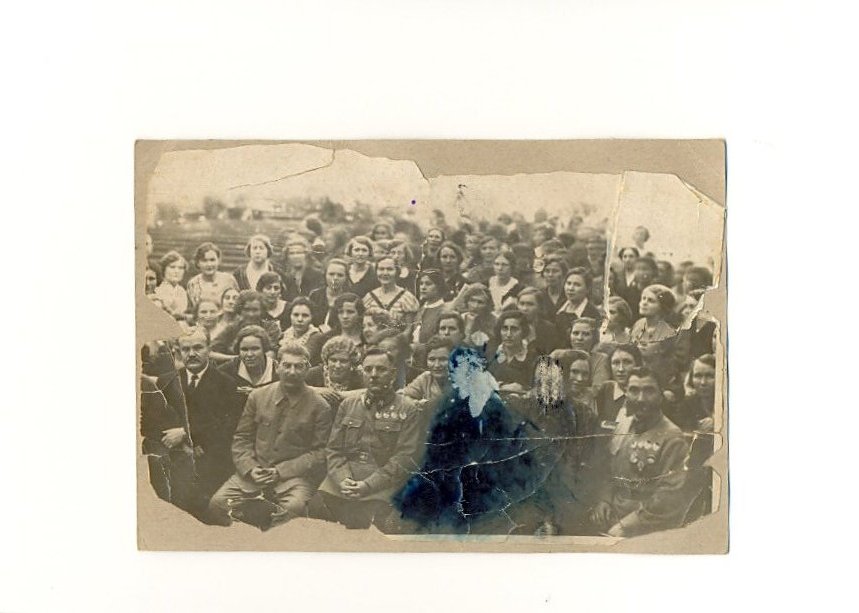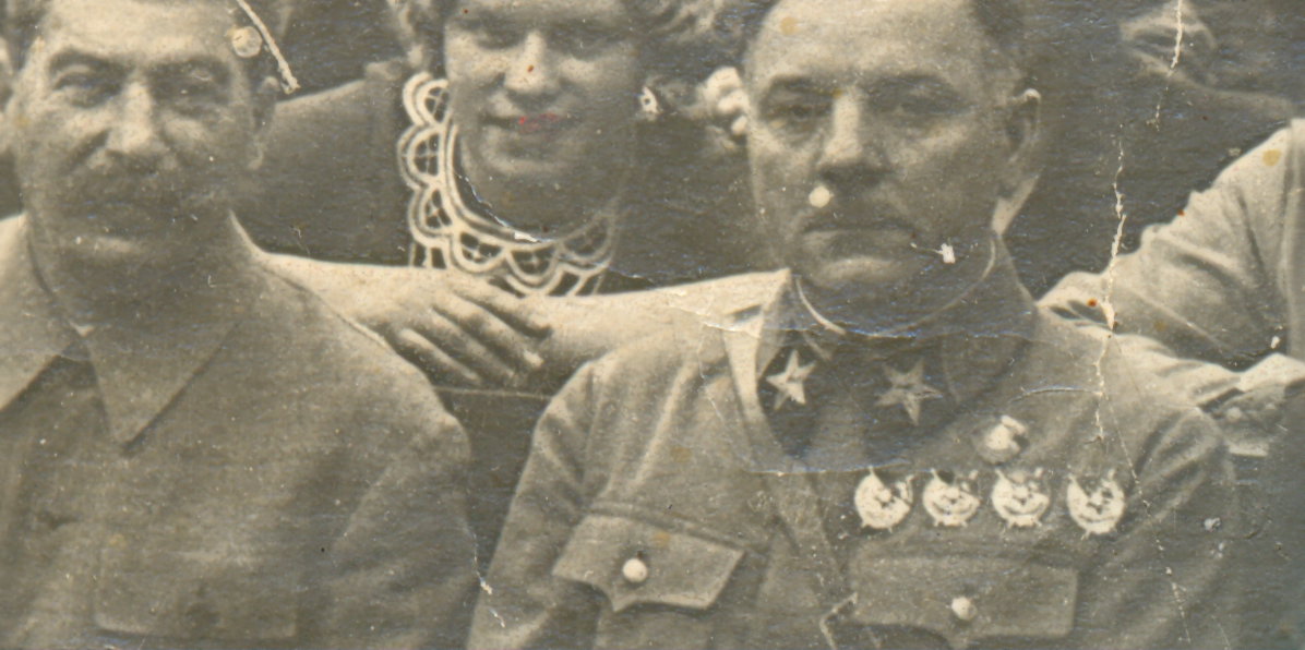 Наклеена на картонке.Надпись написана позже.Участница жива.Утверждает,что затёртые-Блюхер и Тухачевский,что врятли.Предложите.